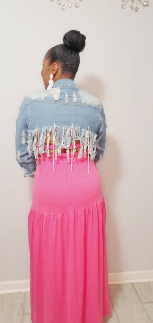 Dst Greek Apparel Cropped Satin Varsity Jacket