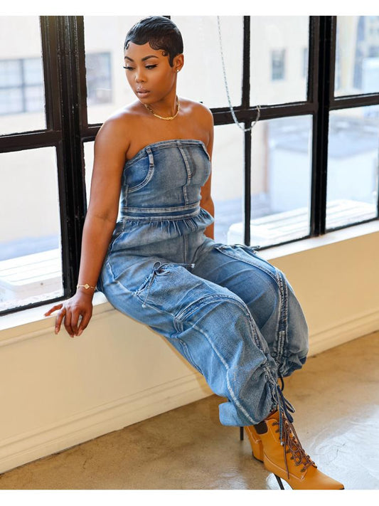 Nicki Denim Cargo Jumpsuit