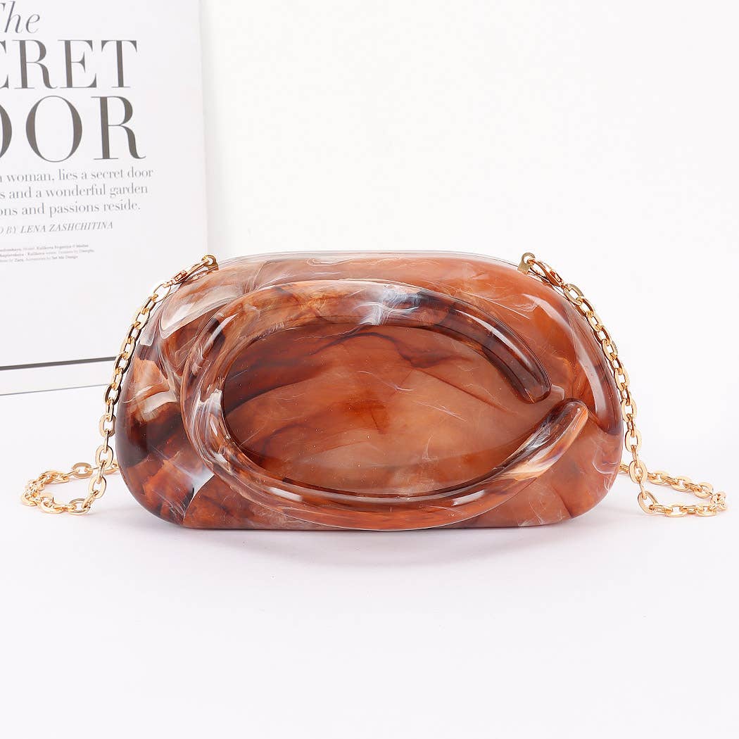 * This Acrylic Marble Handle Clutch from H&D Accessories showcases a unique design. Crafted with acrylic material featuring a marble - like pattern, it has an integrated handle and a gold - tone chain strap for versatile carrying. The compact, stylish shape makes it a standout accessory.